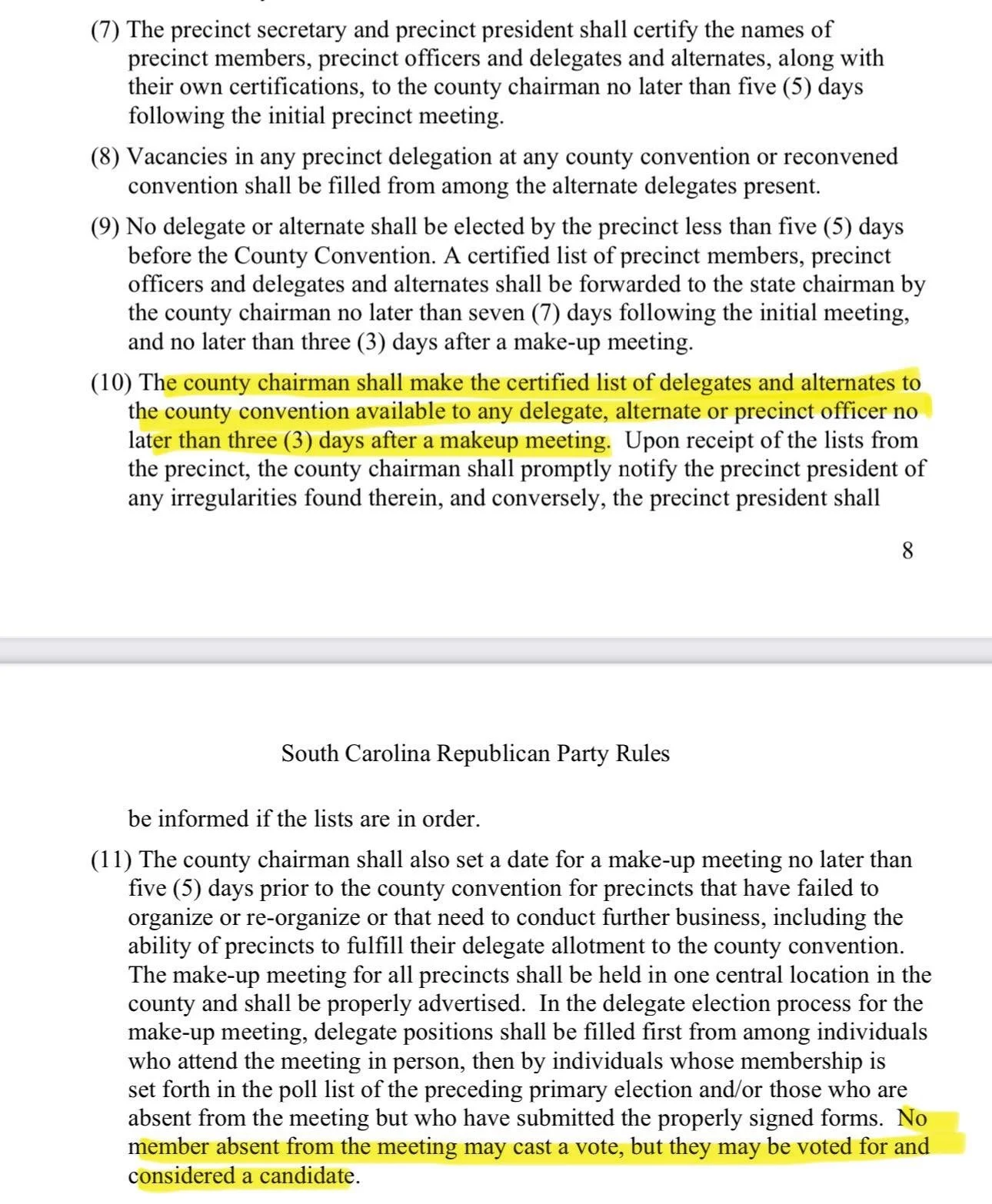 𝐖𝐢𝐭𝐡𝐡𝐨𝐥𝐝𝐢𝐧𝐠 𝐭𝐡𝐞 𝐝𝐞𝐥𝐞𝐠𝐚𝐭𝐞 𝐥𝐢𝐬𝐭 𝐢𝐬 𝐢𝐧 𝐃𝐈𝐑𝐄𝐂𝐓 𝐯𝐢𝐨𝐥𝐚𝐭𝐢𝐨𝐧 𝐭𝐨 𝐬𝐭𝐚𝐭𝐞 𝐫𝐮𝐥𝐞 𝟒(𝐜)(𝟏𝟎) 𝐰𝐡𝐢𝐜𝐡 𝐄𝐗𝐏𝐋𝐈𝐂𝐈𝐓𝐋𝐘 𝐬𝐭𝐚𝐭𝐞𝐬 𝐭𝐡𝐚𝐭 𝐭𝐡𝐞 𝐜𝐨𝐮𝐧𝐭𝐲 𝐂𝐡𝐚𝐢𝐫𝐦𝐚𝐧 𝐦𝐮𝐬𝐭 𝐦𝐚𝐤𝐞 𝐭𝐡𝐞 𝐝𝐞𝐥𝐞𝐠𝐚𝐭𝐞 𝐥𝐢𝐬𝐭 𝐚𝐯𝐚𝐢𝐥𝐚𝐛𝐥𝐞 “𝐭𝐨 𝐀𝐍𝐘 𝐝𝐞𝐥𝐞𝐠𝐚𝐭𝐞, 𝐚𝐥𝐭𝐞𝐫𝐧𝐚𝐭𝐞 𝐨𝐫 𝐩𝐫𝐞𝐜𝐢𝐧𝐜𝐭 𝐨𝐟𝐟𝐢𝐜𝐞𝐫 𝐧𝐨 𝐥𝐚𝐭𝐞𝐫 𝐭𝐡𝐚𝐧 𝐭𝐡𝐫𝐞𝐞 (𝟑) 𝐝𝐚𝐲𝐬 𝐚𝐟𝐭𝐞𝐫 𝐚 𝐦𝐚𝐤𝐞𝐮𝐩 𝐦𝐞𝐞𝐭𝐢𝐧𝐠.”