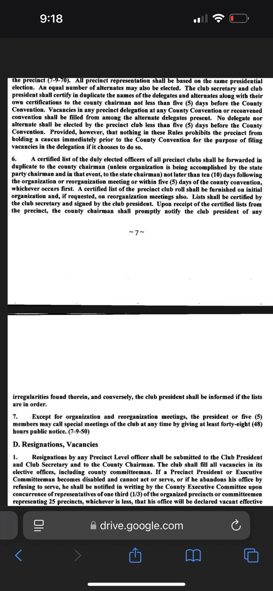 𝐓𝐡𝐢𝐬 𝐢𝐬 𝐟𝐚𝐥𝐬𝐞. Posted below is a screenshot of our state rule, as well as a screenshot of our county rule. In neither is it stated that this process is under the Chair’s sole purview.