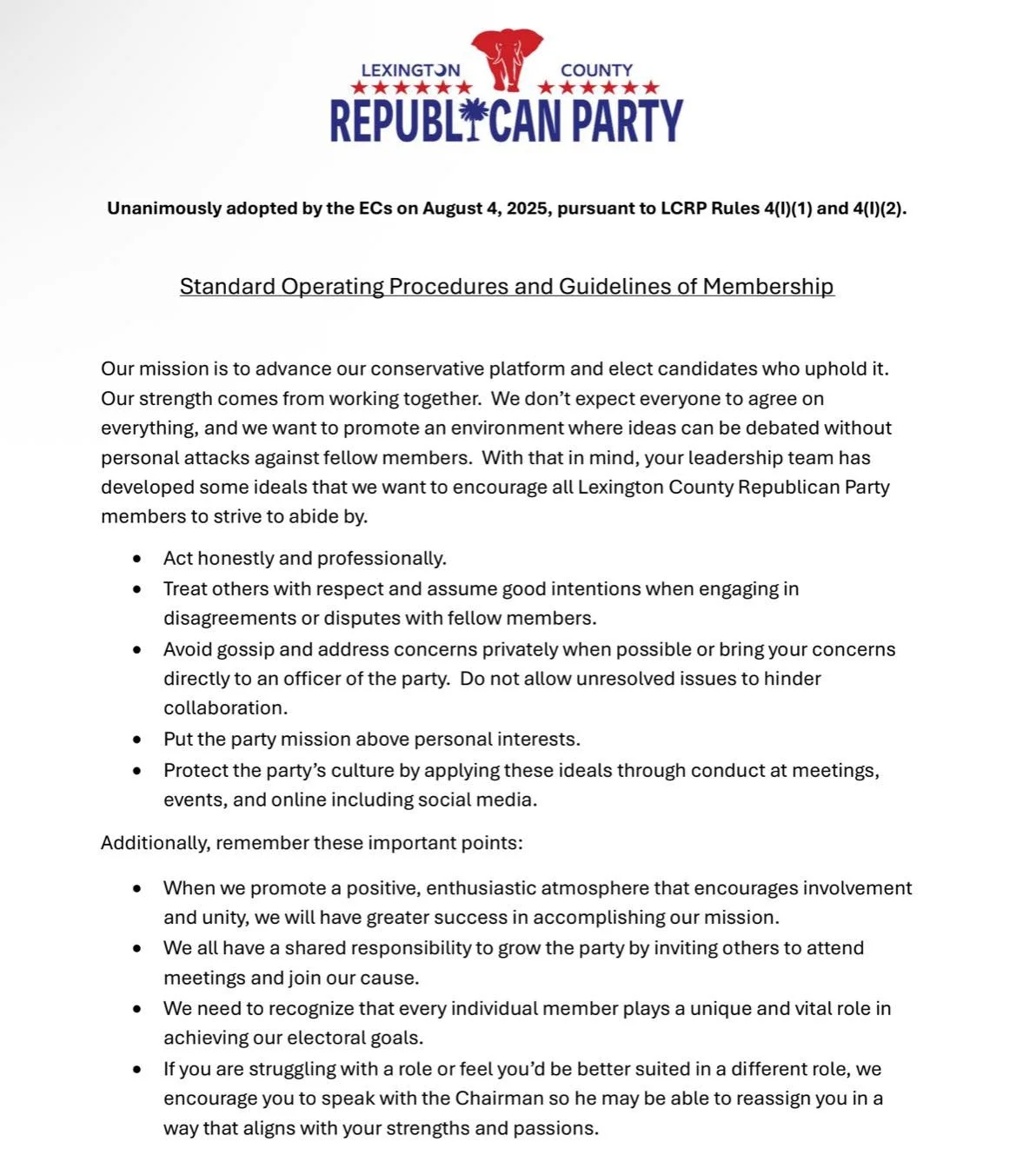 I have included the new “guidelines” passed by Lexington GOP Chairman Mark Weber and the leadership team in August. I would argue that adding these on to the county GOP rules package actually breaks the party rules that forbid rule changes outside of county convention. But I digress.